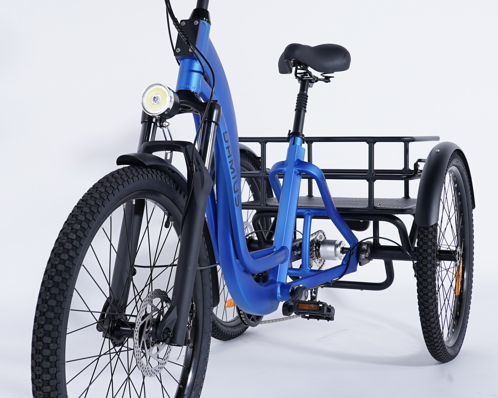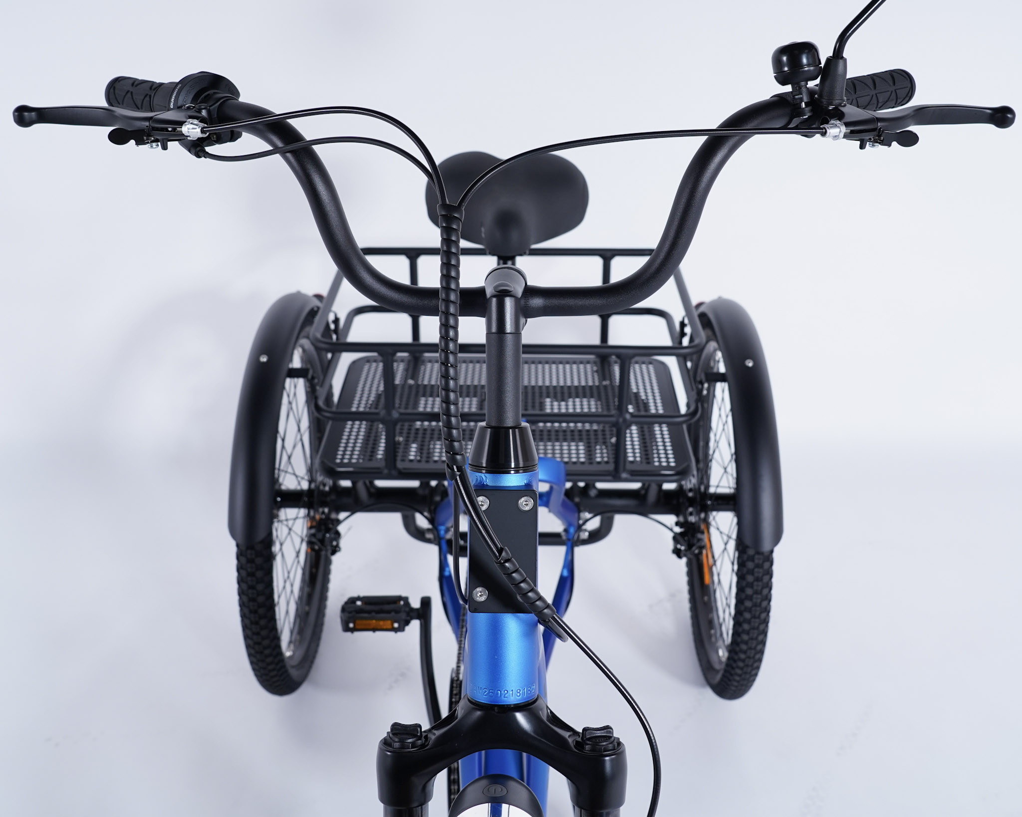 • Tricycle adulte non électrique Damius ESSENTIEL bleu métallisé vue de face