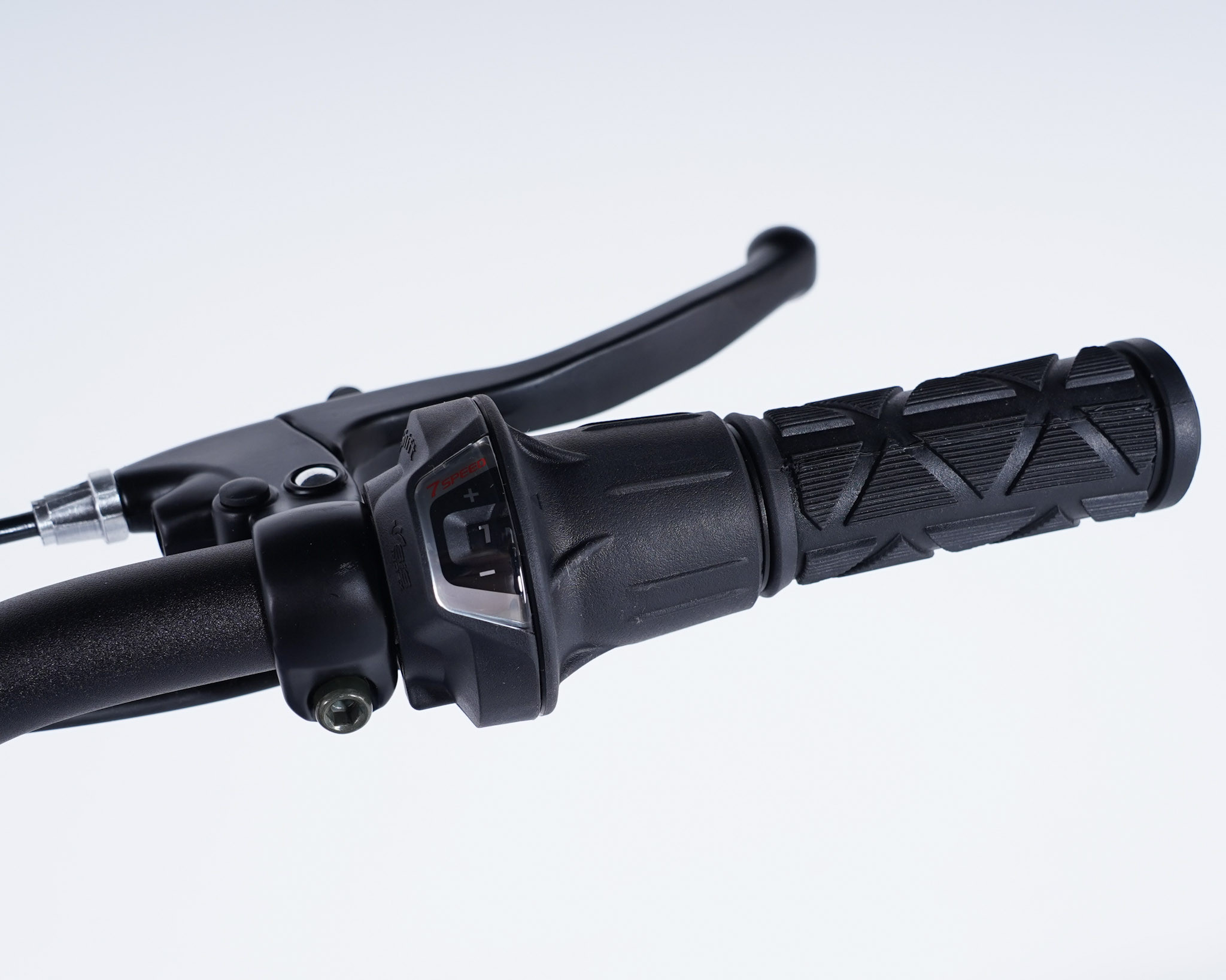 • Dérailleur à 7 vitesses Shimano TOURNEY, commande par poignée tournante Revoshift