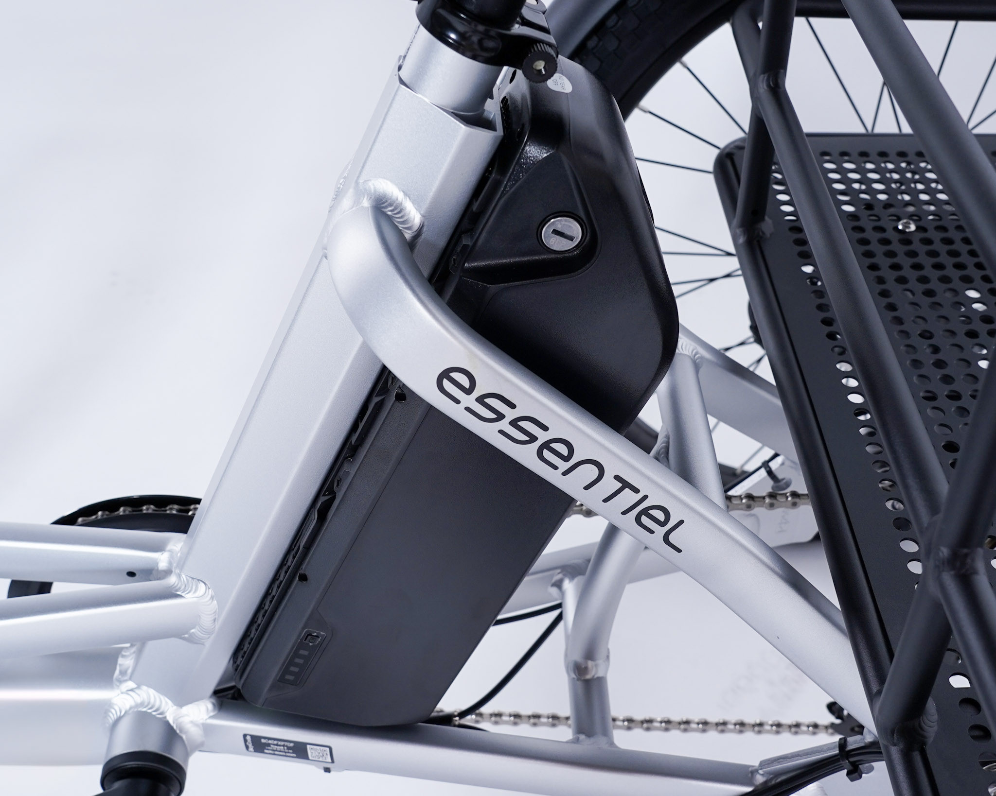 La batterie 36V et 360Wh d'origine vous assistera pour des trajets d'environ 40km mais des batteries optionnelles avec plus de capacité sont proposées en 540Wh et même 720Wh si vous souhaitez doubler l'autonomie ! Le tricycle Essentiel dispose d'une gâchette d'accélérateur d'aide au démarrage permettant d'avancer sans pédaler jusqu'à 6km/h ainsi que d'un grand écran bien lisible. Il est équipé d'un dérailleur 7 vitesses facile à utiliser et fiable, d'un rétroviseur et de garde-boue enveloppant pour rouler même s'il pleut et il est même équipé d'un feu stop qui s'allume et clignote lorsque vous freinez !