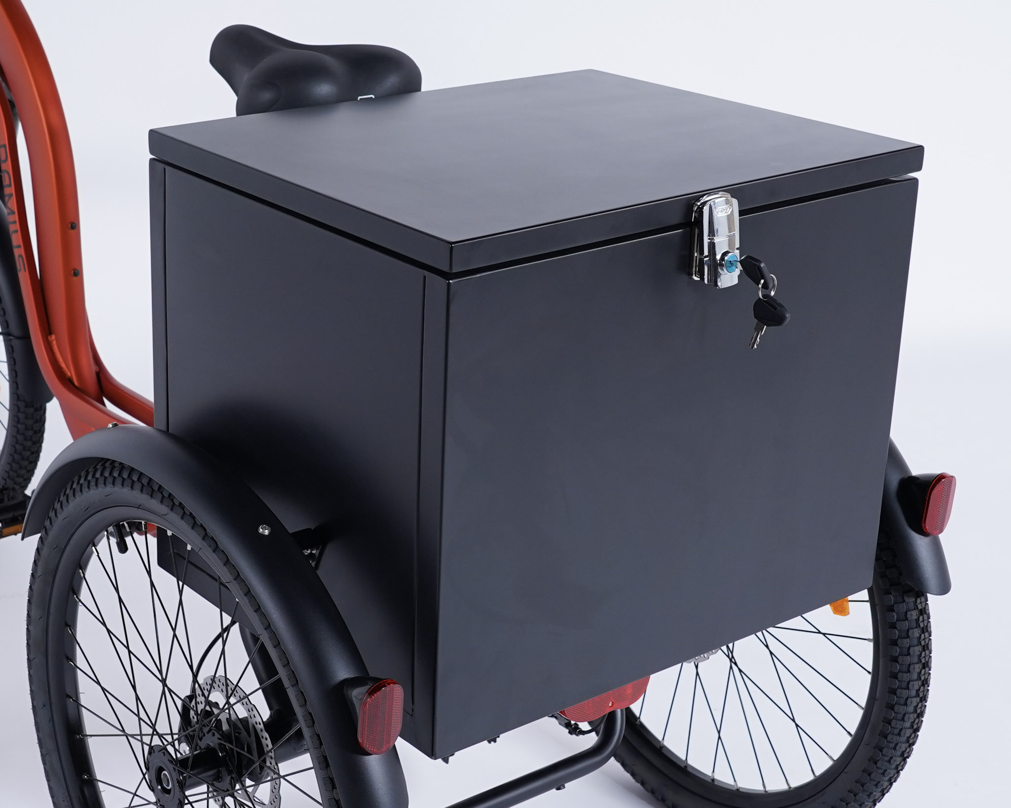 45x56x45cm soit 110 litres de volume pour cette caisse résistante aux intempéries. Cela rallonge votre tricycle de 12cm.€250.00Panier avant
