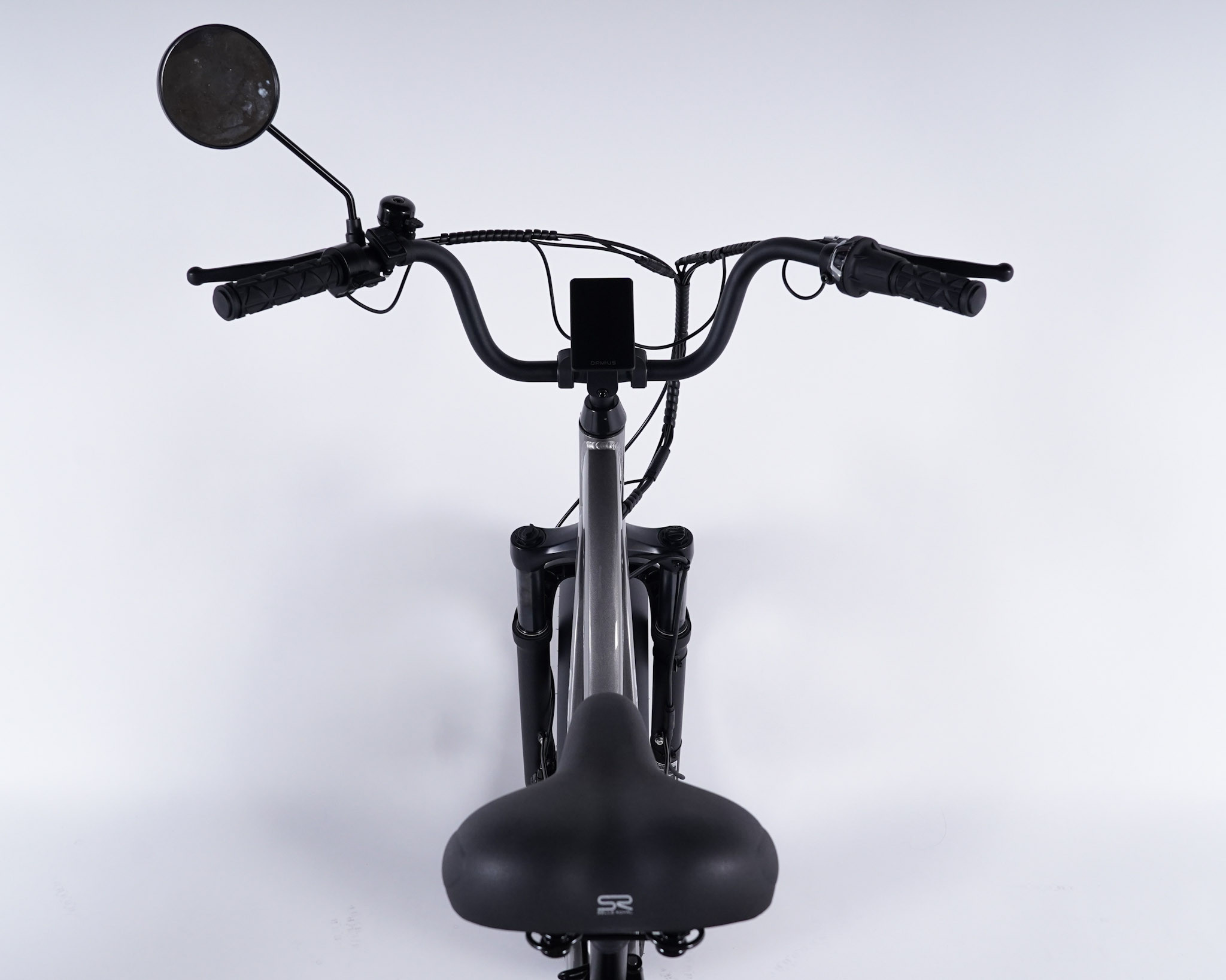 La couleur est elle aussi unique, il s'agit d'un magnifique gris métallisé mat du plus bel effet sur le cadre tandis que l'ensemble des composants est peint en noir !