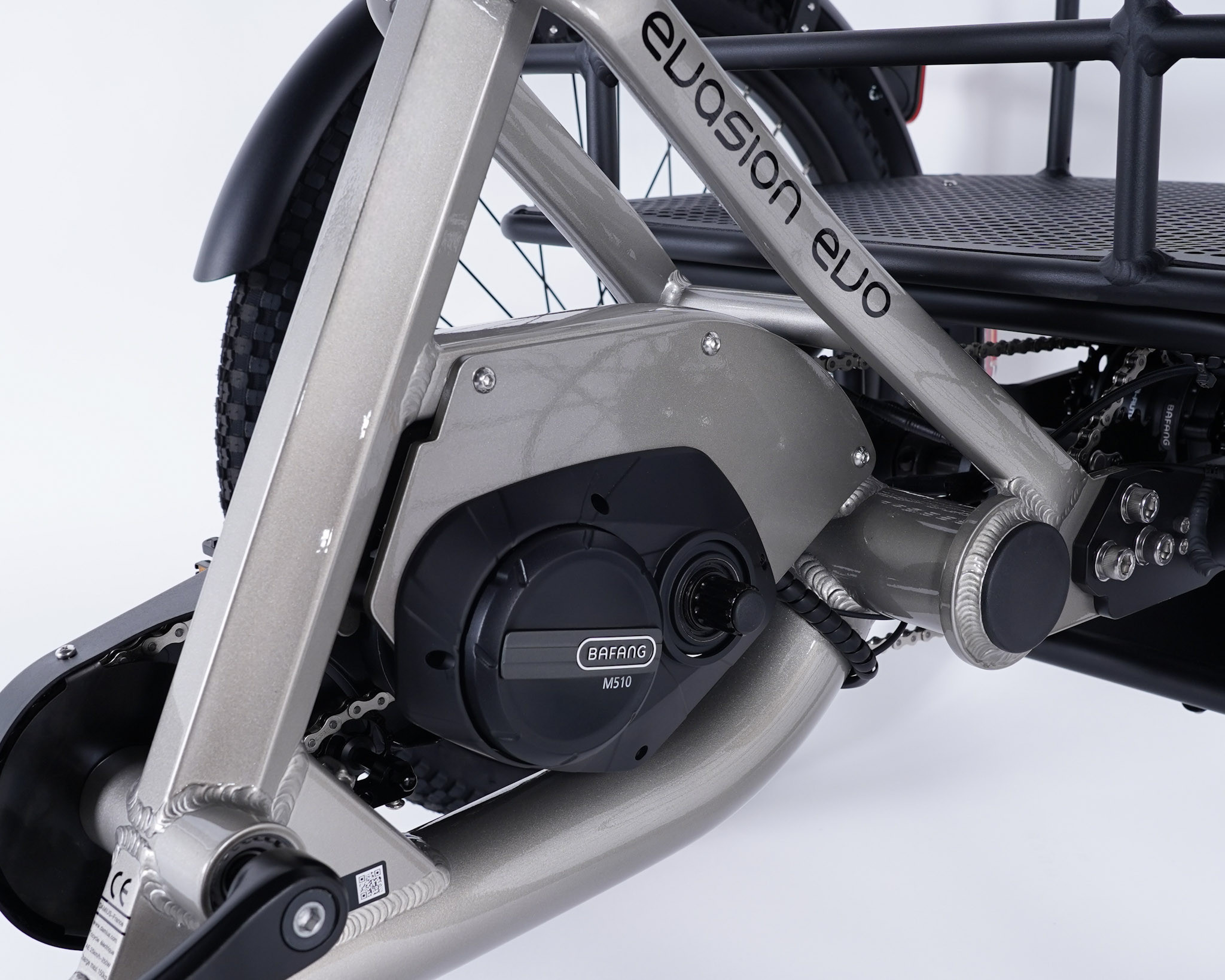 D'origine l'Evasion moteur pédalier se voit équipé d'un différentiel permettant de parfaitement répartir la puissance du moteur et du pédalage aux roues arrières et d'une boîte de vitesses automatique grâce à laquelle vous n'avez même plus à passer les vitesses. Avec cette boîte de vitesse, impossible de dérailler !