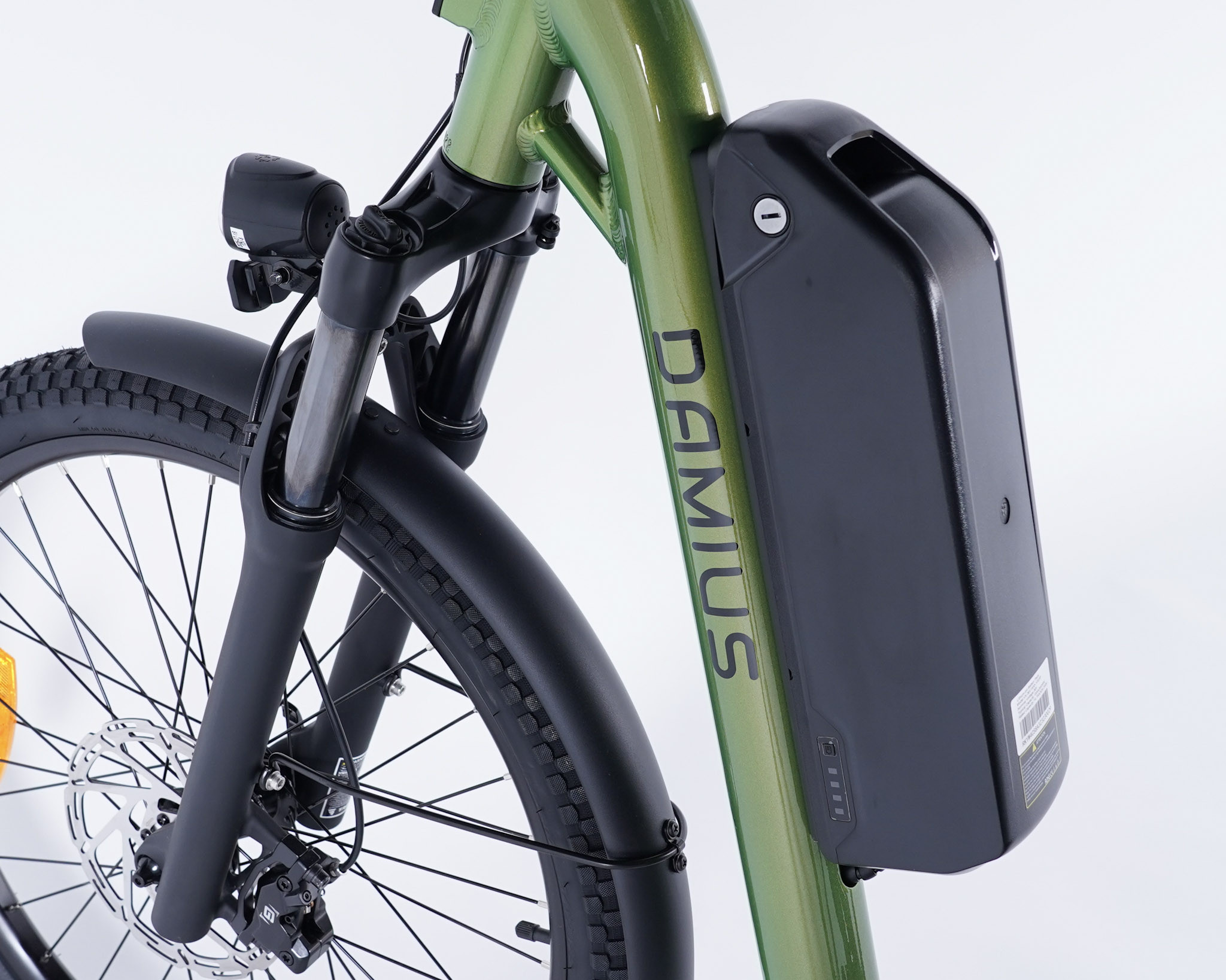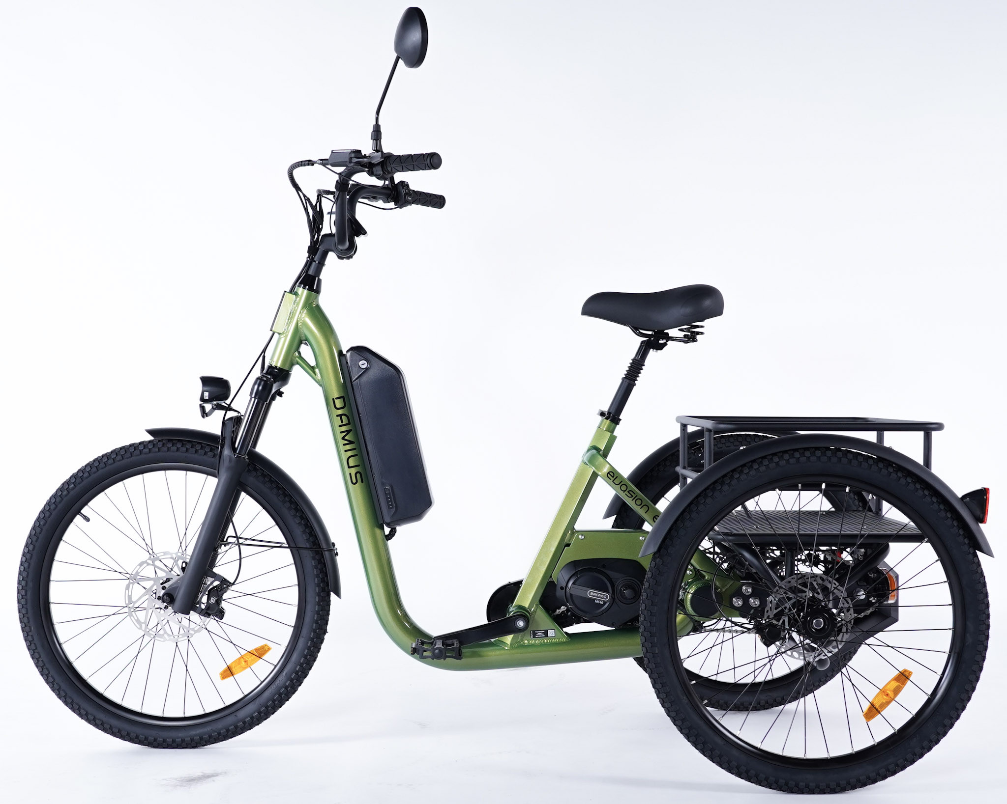 Et puisque c'est un Evasion et que c'est aussi un Damius, vous retrouverez sur ce modèle un enjambement ultra bas afin de faciliter l'accès et il est équipé d'un grand nombre d'équipements d'origine comme le rétroviseur, l'antivol de cadre permettant de bloquer la roue avant, le système d'éclairage complet alimenté par la batterie incluant des feux stop et des feux clignotant, en plus des phares et klaxon ! Les pneus équipant nos modèles sont ni trop gros ni trop fins, ils bénéficient d'une excellente adhérence et d'un confort optimal.